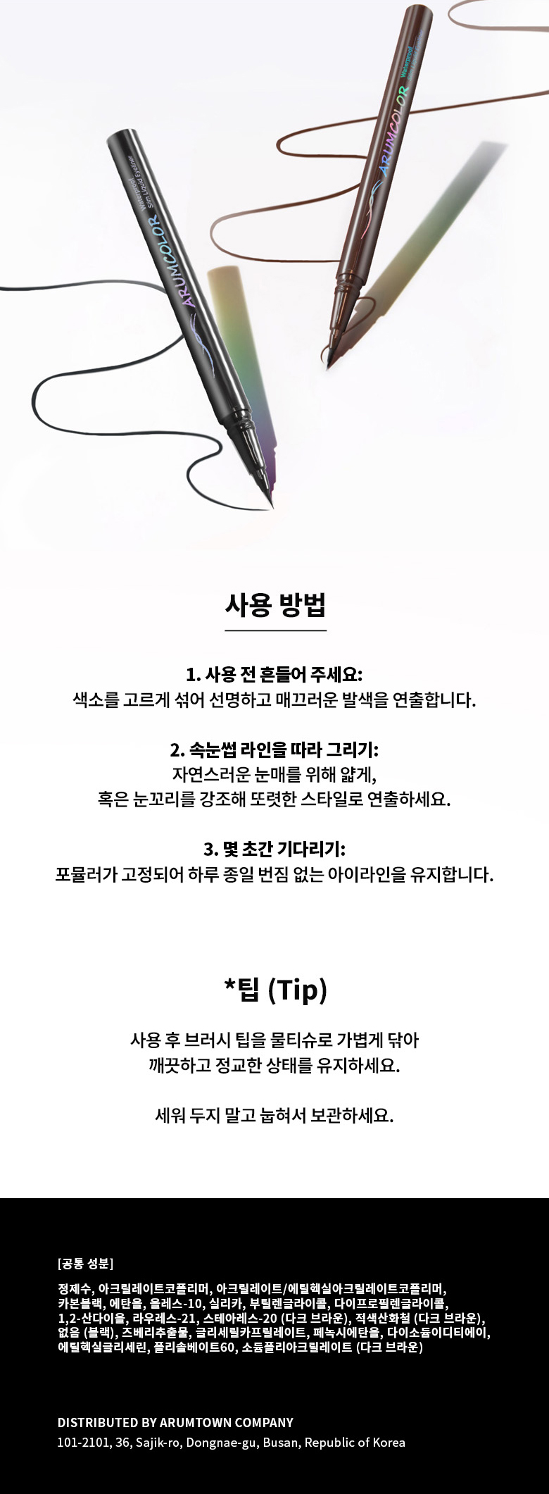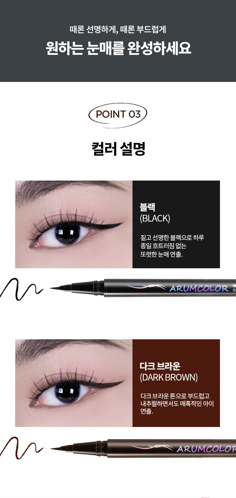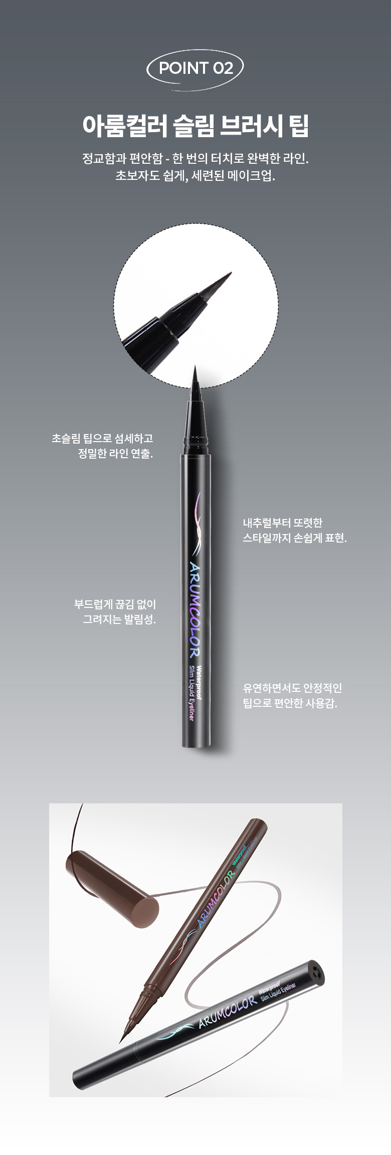 - 초슬림 브러시로 섬세한 라인부터 강렬한 아이라인까지 자유롭게 연출